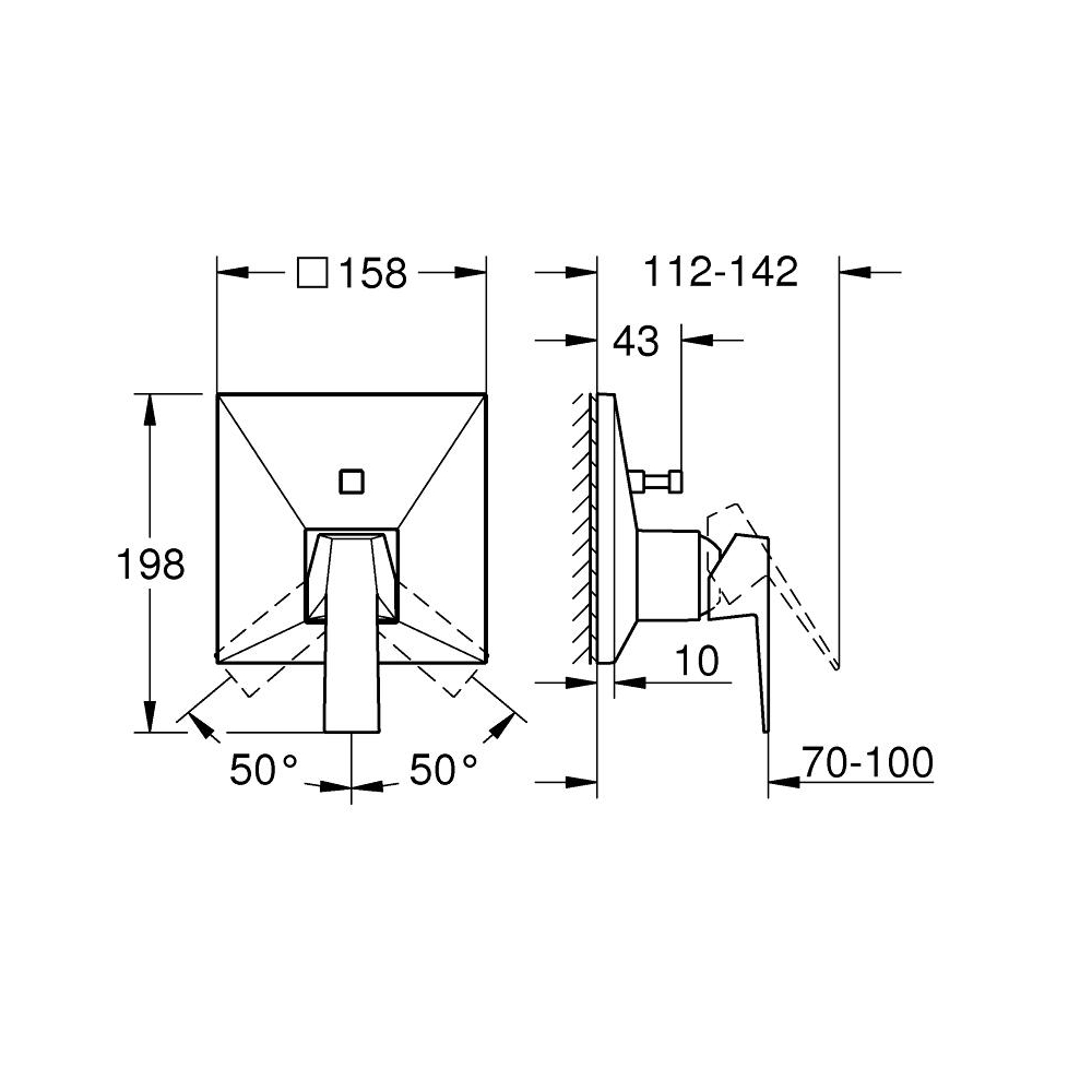trim set for GROHE Rapido SmartBox (35 600/35 604) GROHE SilkMove 46 mm ceramic cartridge GROHE LongLife finish wall escutcheon with GROHE FastFixation (covered escutcheon- and shaft sealing, covered fixing) metal escutcheon, retroactively 6° adjustable metal lever automatic 2-way diverter flow performance: outlet B = 27 l/min, outlet C = 27 l/min without roughing-in-set