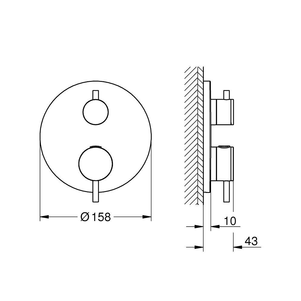 trim set for GROHE Rapido SmartBox (35 600/35 604) GROHE TurboStat compact cartridge with wax thermoelement GROHE LongLife finish wall escutcheon with GROHE FastFixation (covered escutcheon- and shaft sealing, covered fixing) metal escutcheon, retroactively 6° adjustable printed hand shower and bath filler symbol GROHE SafeStop safety button at 38°C (calibration required) GROHE SafeStop Plus optional temperature limiter at 43°C or 46°C included GROHE AquaDimmer, integrated shut off/diverter valve metal handles without roughing-in-set flow performance: outlet B = 27 l/min outlet C = 30 l/min