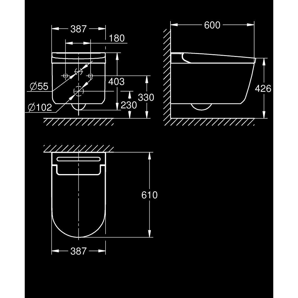 recommended in combination with a GROHE Rapid SL or SLX element (1.13 m installation height)
