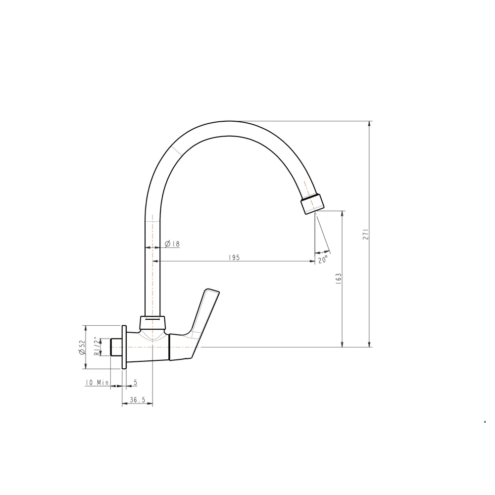 Winston Deck Mounted Kitchen Tap (Lever Handle)