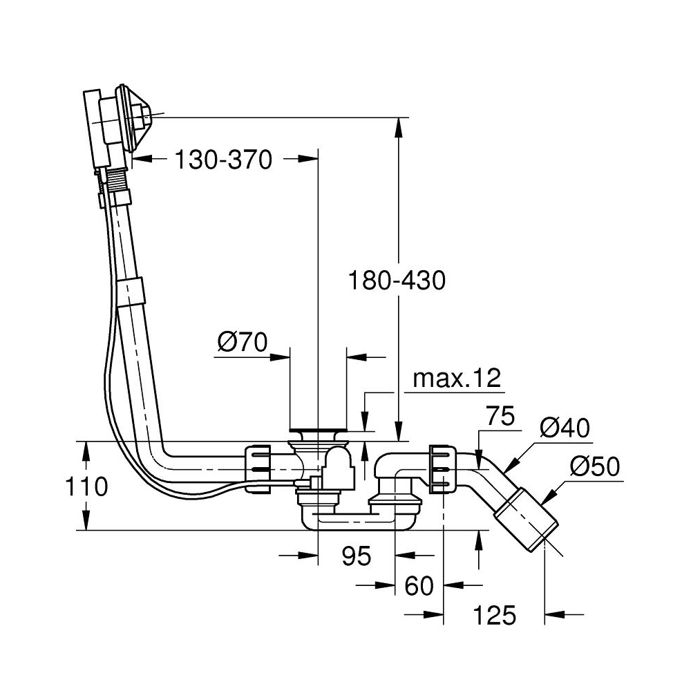 with bowden cable without finishing trim set bottle trap 45° waste elbow
